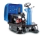Velký sedadlový zametací stroj v benzínovém provedení, ideální pro úklid velkých ploch.
